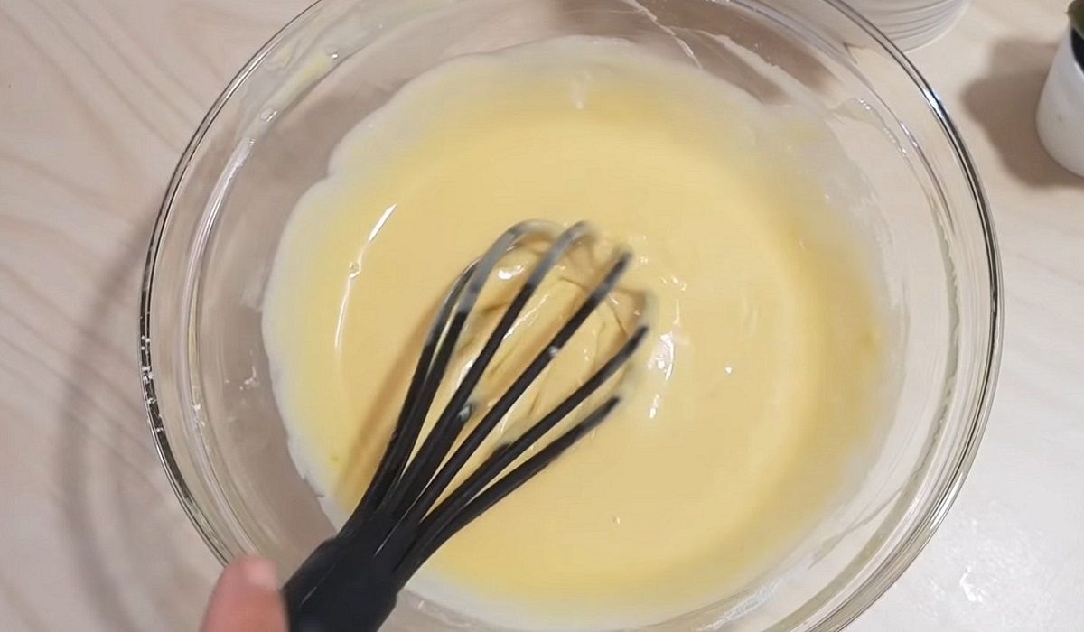 Wymieszaj mleko z mąką. Wymieszaj olej roślinny, a następnie dodaj go do mieszaniny.