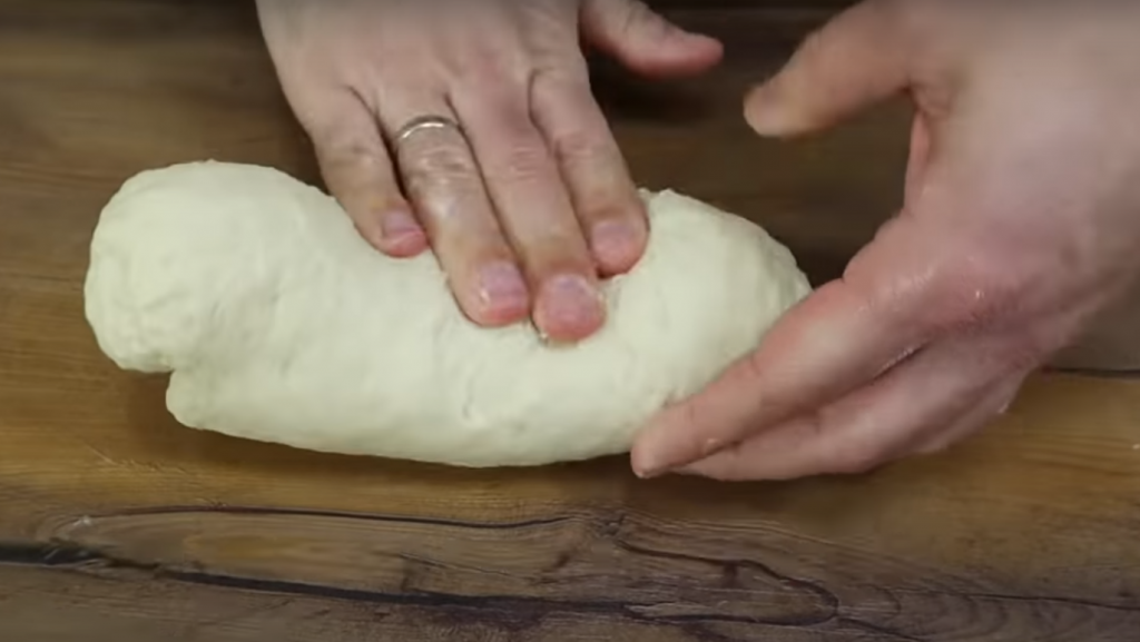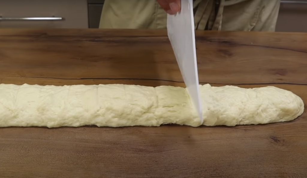 Gdy ciasto rośnie posiekaj zioła, dodaj do serka i wymieszaj. Ciasto wyłóż i uformuj go w długi wałek, następnie podziel na mniejsze kawałki. Z każdego kawałka uformuj kulkę.