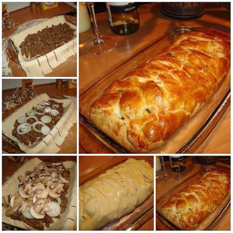 Na pewno w swojej lodówce znajdziesz ciasto francuskie, bo u mnie jest ono prawie zawsze i w łatwy sposób zrobisz pożywny, sycący i smaczny posiłek. Zapewniam, że Twoje ciasto mięsne będzie świetnie wyglądać i jeszcze lepiej smakować.