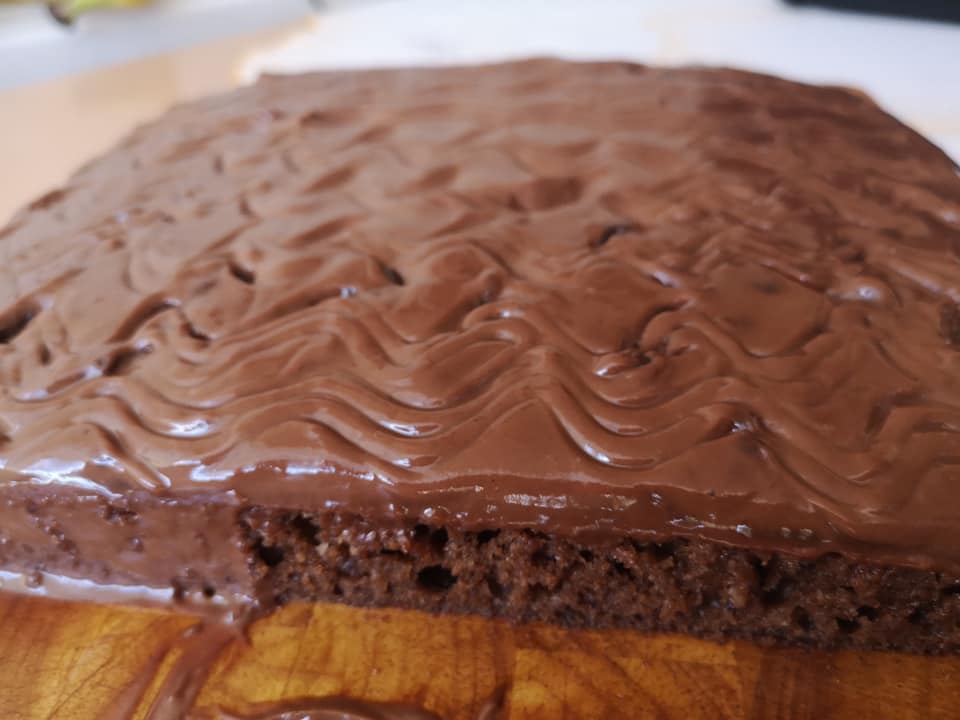 Piec w temperaturze 180°C przez 45 minut. Ostudź, a następnie rozprowadź na wierzchu dżem. Przełóż śmietanę do rondelka, połam czekoladę i rozpuść ją w gorącej kąpieli wodnej. Umieść polewę na wierzchu ciasta i pozostaw do schłodzenia w lodówce przez dwie godziny. Ciasto można również polać polewą czekoladową.