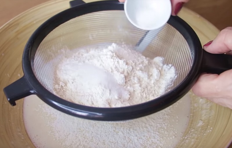 Po tym czasie usuń folię, dobrze wymieszaj składniki i powoli dodawaj przesianą przez sitko mąkę. Pamiętaj, żeby zostawić trochę przesianej mąki do posypania stolnicy.