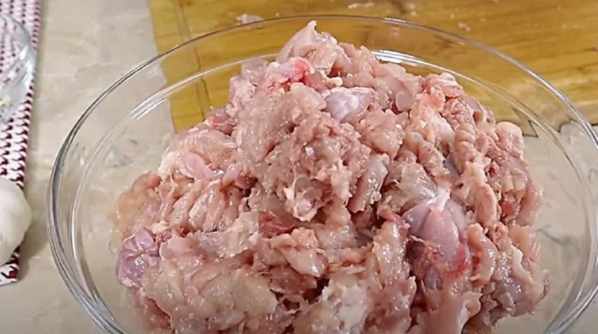 Mięso należy dobrze oddzielić od kości. Pokroić na drobne kawałki i ugotować w wodzie. Następnie trzeba je posiekać na jeszcze mniejsze części lub zmielić w maszynce. Można również użyć blendera. Rozdrobnione mięso wymieszać z przyprawami.