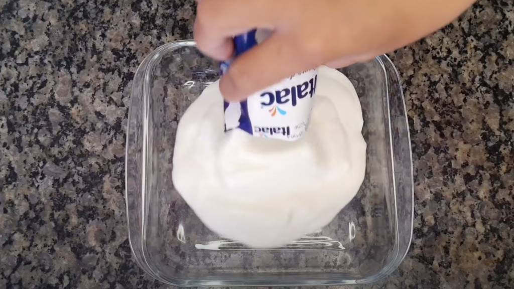 Śmietanę przelewamy do miski. Dodajemy do niej mleko skondensowane.