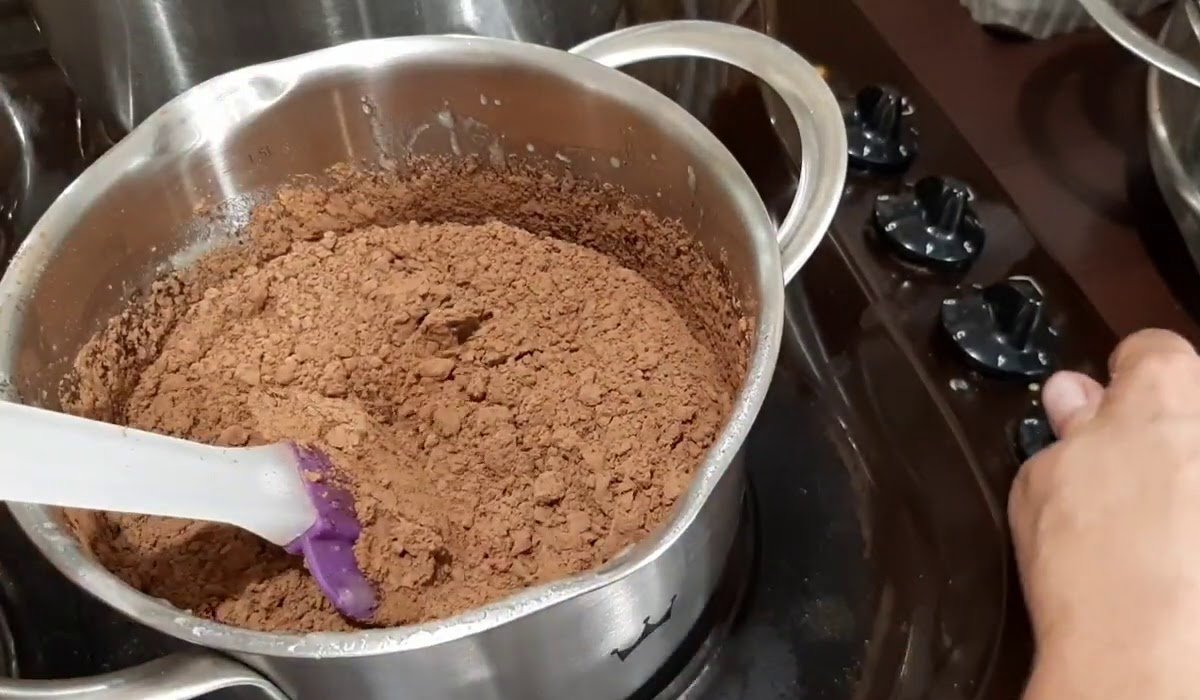 Do masła dorzuć miód i poczekaj aż się rozpuści. Nie spuszczaj mieszanki z oka i często ją mieszaj. Nie wolno zagotować mieszanki! Dodaj do niej cukier i mieszaj, ciągle gotując aż wszystko się rozpuści. Na końcu dodaj kakao i dokładnie wymieszaj.