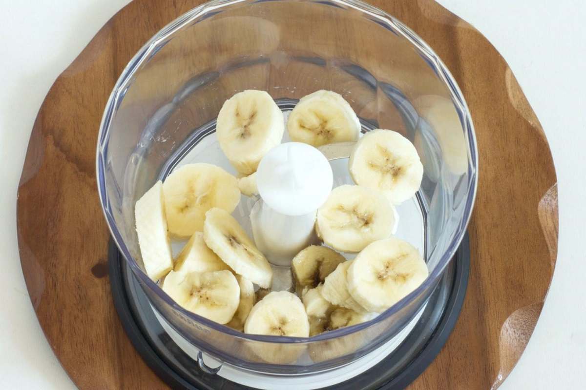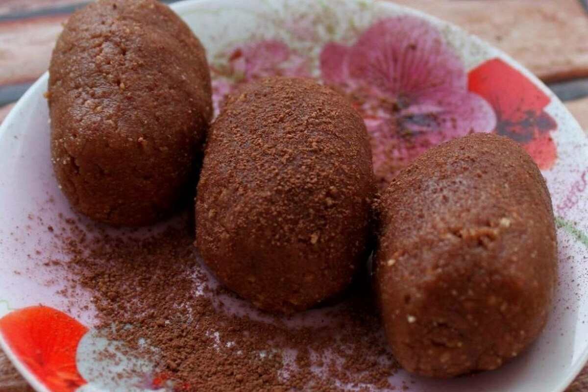 Upieczone w ten sposób ciasto studzimy, a następnie kroimy i blendujemy wraz z obranym bananem. Tak powstałą masę formujemy w dowolny kształt – najlepiej sprawdzą się kulki lub bryłki, które obtaczamy w 1 łyżeczce kakao.