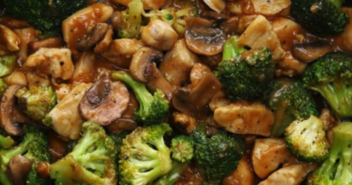 Pyszny kurczak z pieczarkami i brokułami. Prosty, smaczny i szybki posiłek dla kobiet dbających o wagę.