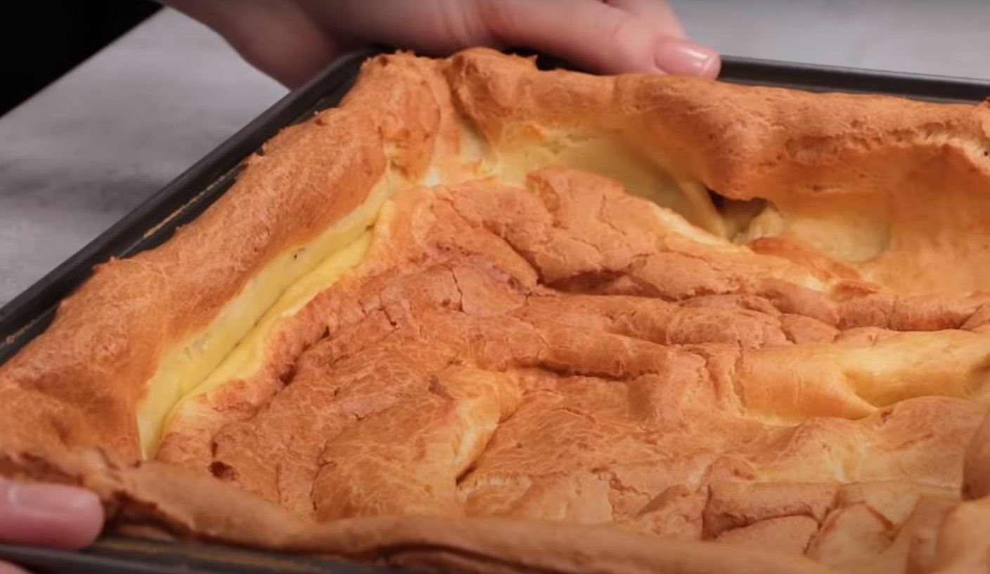 Uzyskaną masę przełóż do miski i wymieszaj z 4 jajami. Rozgrzej piekarnik do 180 stopni. Blachę wypełnij surowym ciastem i piecz około 30 minut.