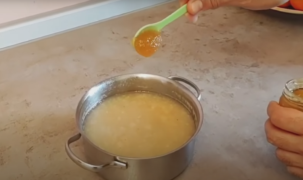 Gdy syrop będzie ciepły, ale nie wrzący, dodaj do niego 2 łyżki miodu.