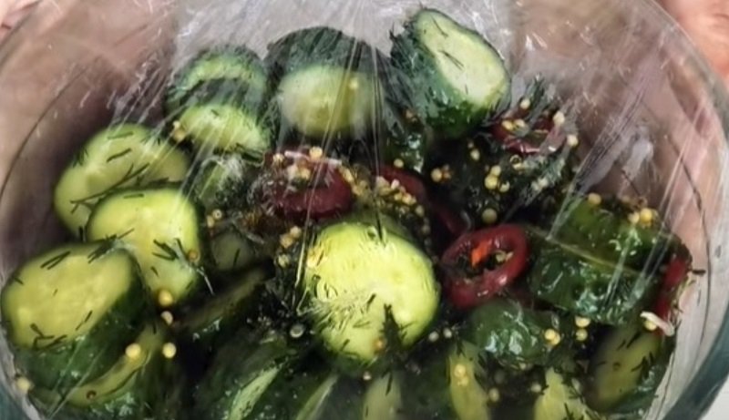 Misę należy przykryć szczelną folią i odstawić do lodówki. Czas marynowania powinien wynosić około półtorej godziny. W międzyczasie kilkakrotnie przemieszać całość.