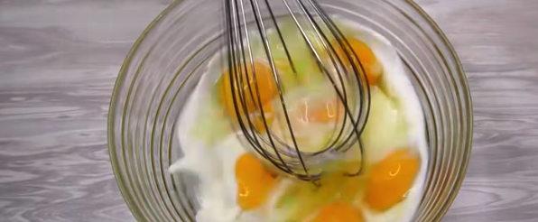 Przygotuj ciasto na naleśniki. Wbij do miski wszystkie jaja, dodaj mleka, szczyptę soli i dokładnie wytrzep trzepaczką!
