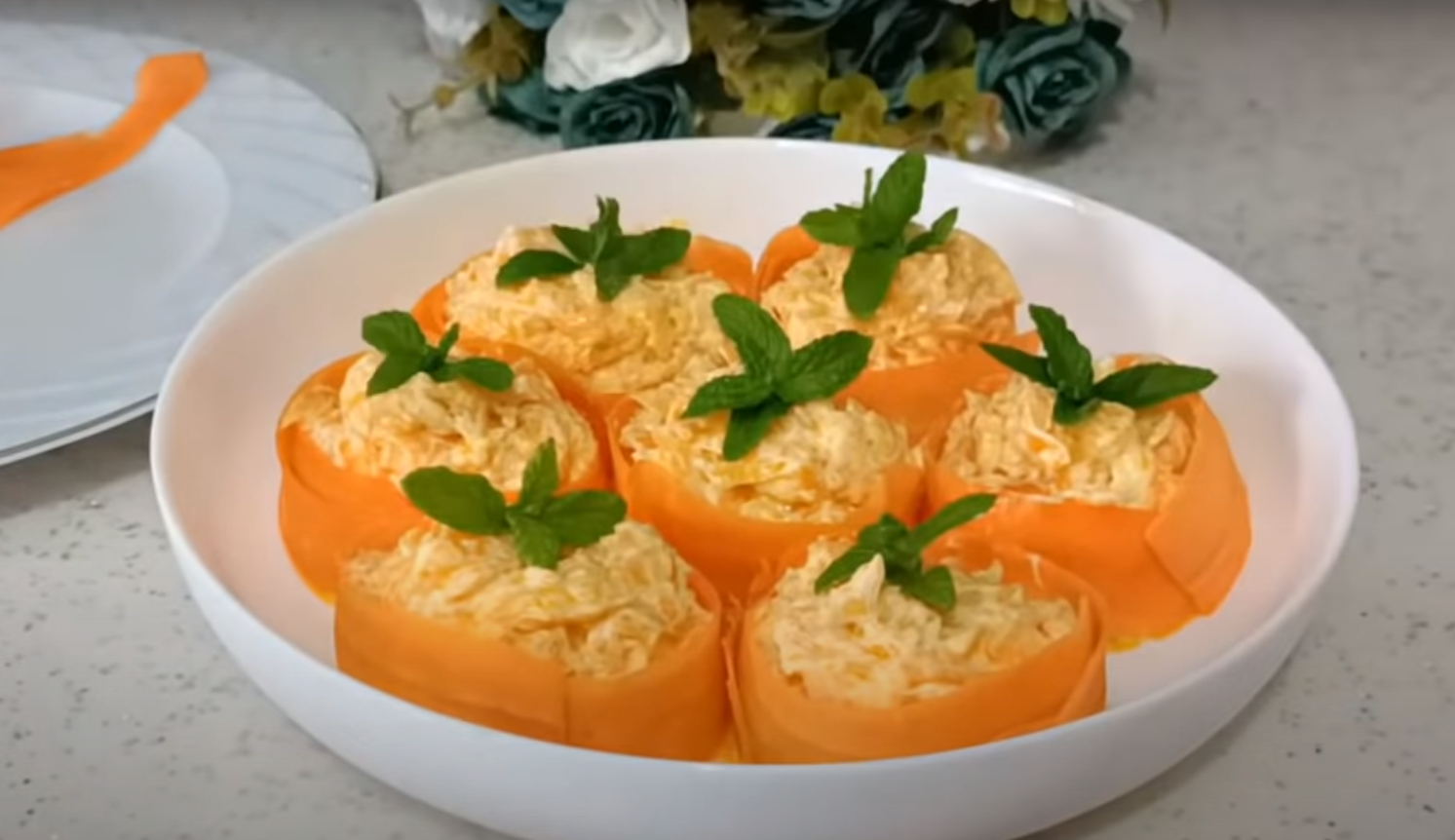 Podanie sałatki w ten sposób na pewno zaskoczy Twoich gości. Apetyczny wygląd sprawia, że nawet dzieci chętnie ją spróbują. To prosty, ale nietuzinkowy sposób na przygotowanie sałatki z marchwi.