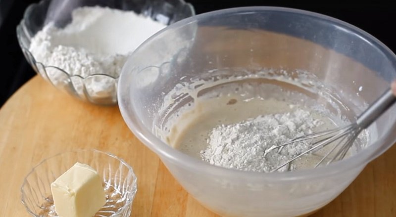 W misce wymieszać ciepłe mleko, łyżkę cukru, drożdże oraz dwie łyżki mąki. Mieszankę odstawić na chwilę. Ubić jajko. Do osobnego naczynia przesiać pozostałą mąkę, dodać resztę cukru, sól oraz ubite jajko.