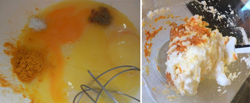 W osobnej misce ubić białka z solą i sokiem z cytryny. Pianę dodać do ciasta i delikatnie wymieszać. Tak przygotowane ciasto jest niezwykle lekkie, delikatne i puszyste.