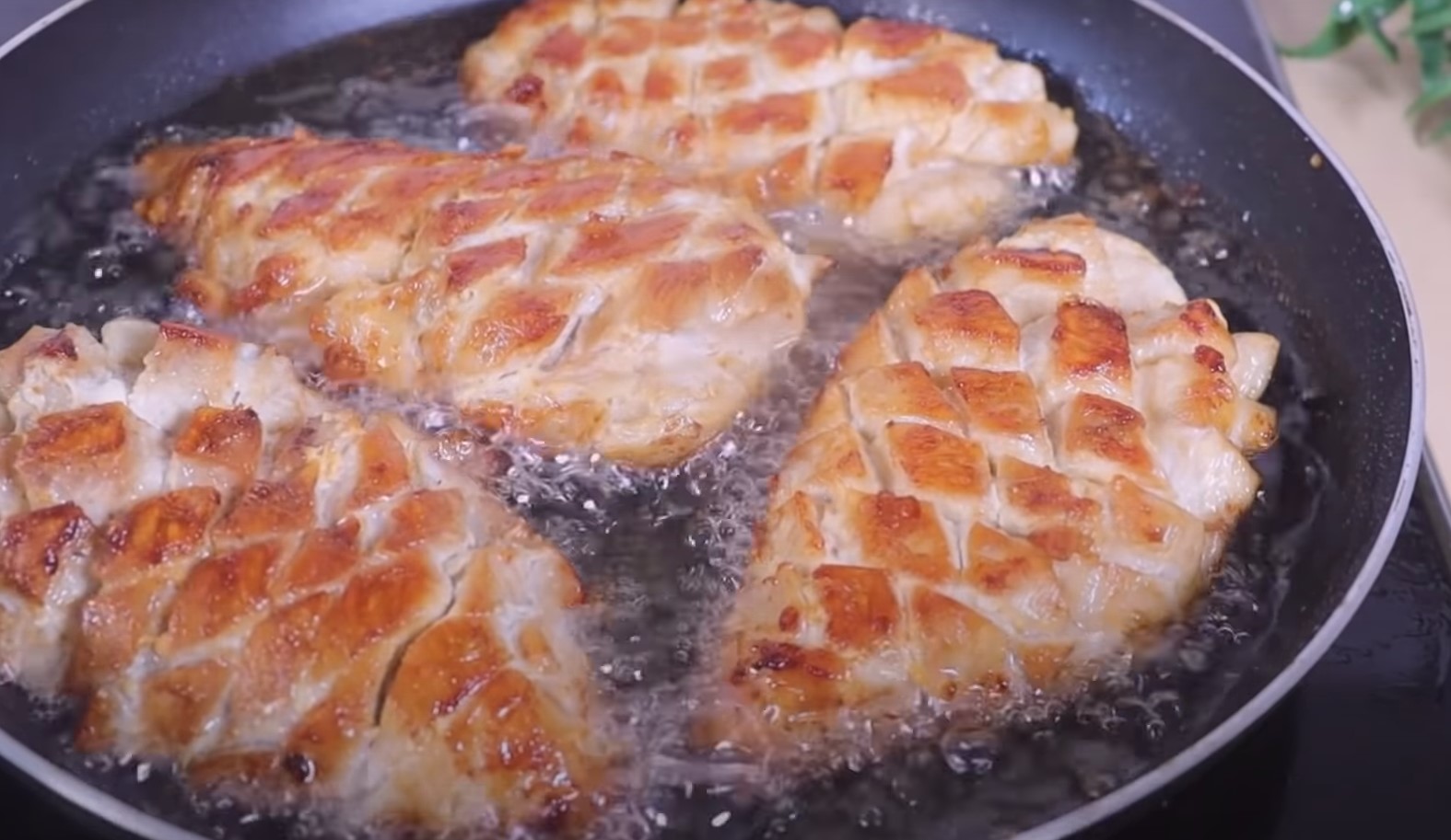 Aby utworzyć kratkę, pokrój piersi kurczaka ukośnie na całej powierzchni.