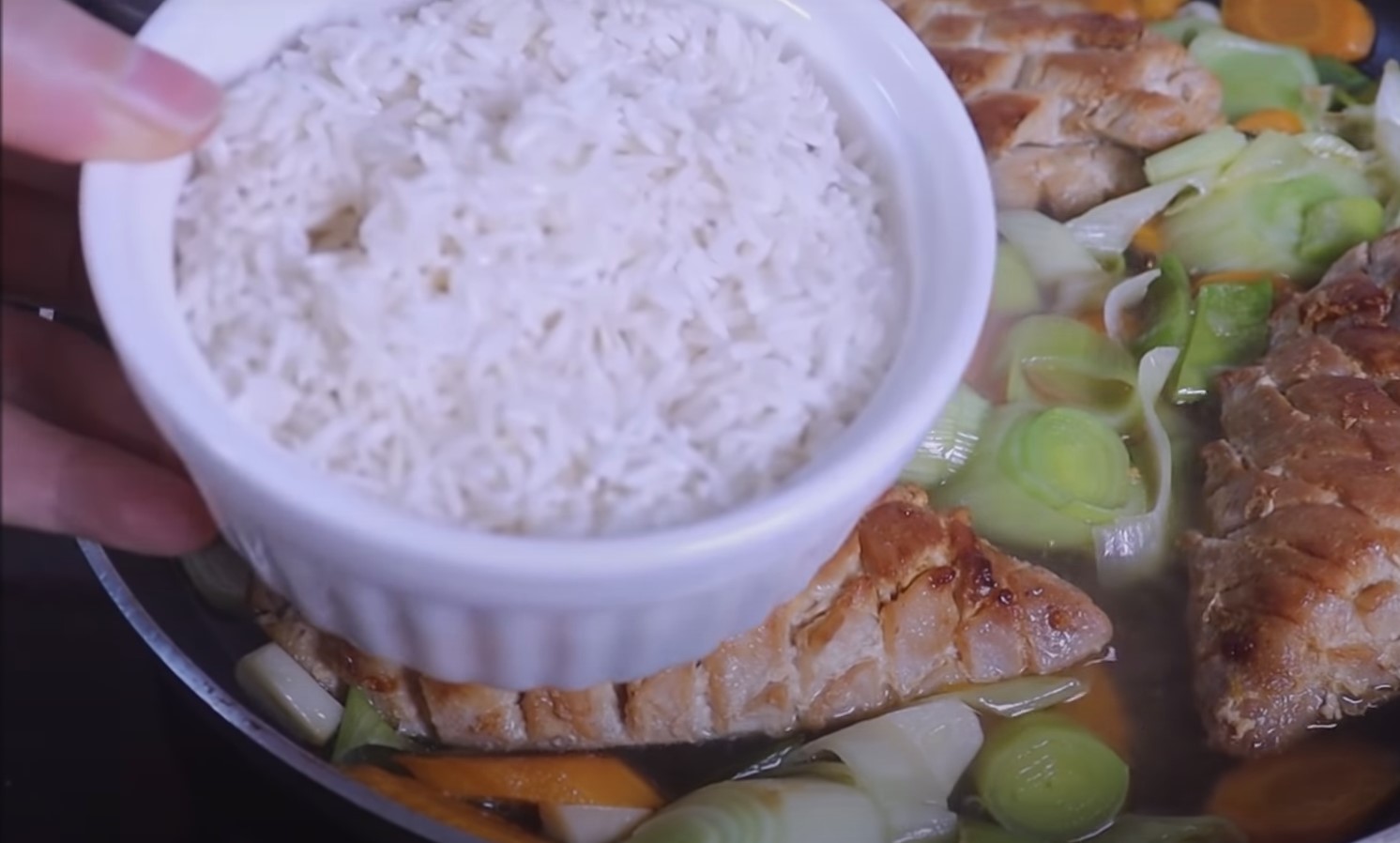 Posolić do smaku. Przykryć i gotować na wolnym ogniu przez kolejne 10 minut. Dodać ryż do rondla i gotować na wolnym ogniu przez 10 minut.