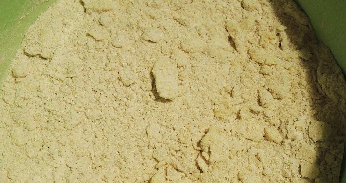 Mąkę pszenną należy dokładnie przesiać i wymieszać ją z proszkiem do pieczenia. Potem do tych suchych składników dodać jeszcze masło, które wcześniej trzeba pokroić w drobniejsze kostki.