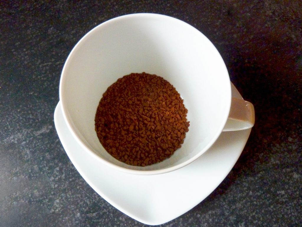 Do osobnego naczynia wsyp kawę oraz cukier i zalej gorącą wodą. Dodaj mleko i wymieszaj. Upieczone wcześniej ciasto skrop otrzymaną mieszaniną w formie, tak aby ciasto się jej „napiło”. Gdy ciasto ostygnie, odwróć je.