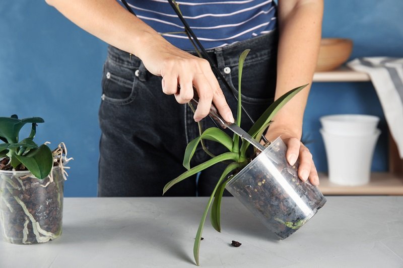 Stare korzenie należy przycinać, tak aby zapobiec uschnięciu rośliny i wspomóc tworzenie nowego systemu korzeniowego.