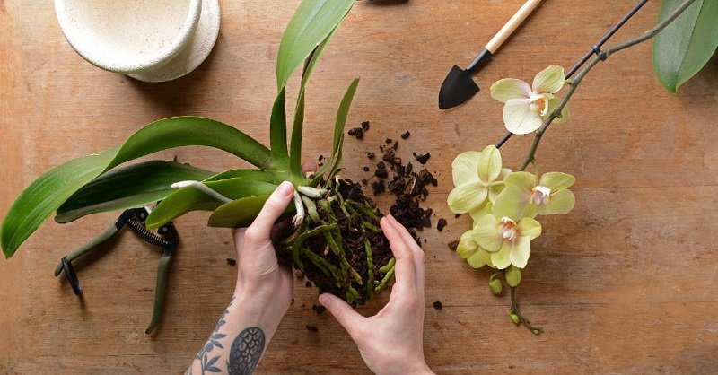 Należy przygotować odpowiednie narzędzia – ostry nóż lub ogrodowy sekator. Roślinę wyjąć delikatnie z doniczki i oczyścić z podłoża. Następnie obejrzeć system korzeniowy i odciąć uszkodzone i stare obszary. Należy przycinać korzenie wewnętrzne i powietrzne.
