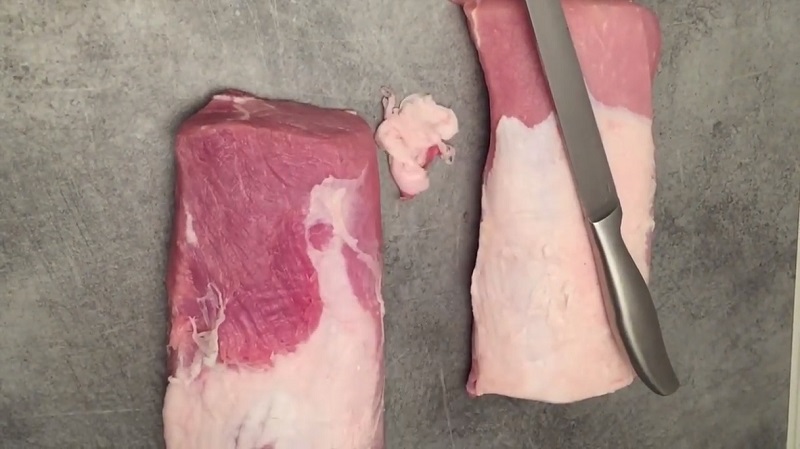 Wieprzowinę dokładnie umyć i osuszyć owijając ją w papierowy ręcznik w celu wchłonięcia nadmiaru wody. Wyciąć zalegający nadmiar tłuszczu.