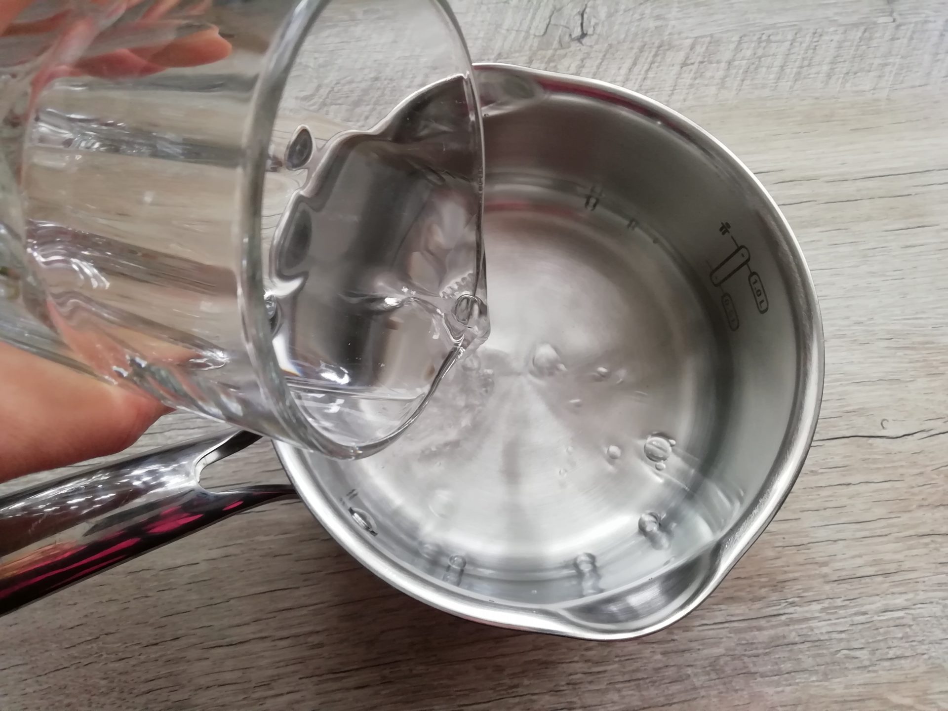 W małym rondelku umieść 2 szklanki wody.