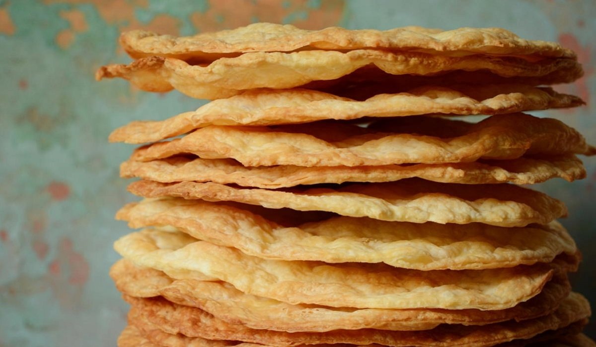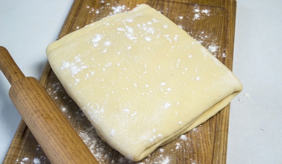 Powinniśmy całość powtórzyć 4 razy. Na koniec ciasto dzielimy na 8 części i wkładamy do lodówki na około 3 godziny. Po 3 godzinach wyjmujemy ciasto i robimy z niego cienkie placki. Wstawiamy je do piekarnika nagrzanego do 180 stopni na 20 min.