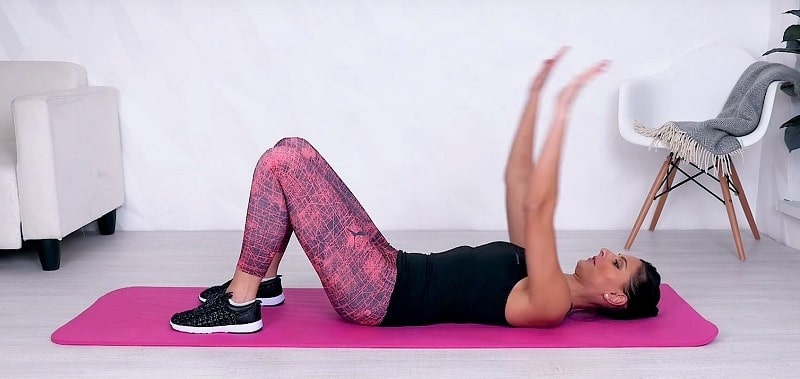 Ręce ułóż na boki, a następnie przenieś je do pierwotnej pozycji, utrzymując w ciągłym napięciu. Nie kładź ich nigdy na podłodze. Podczas tego ćwiczenia może wystąpić lekkie pieczenie, jednak po jego zakończeniu odczucie to zniknie niemal natychmiast.