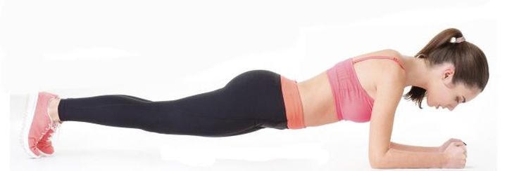 Przyjmij pozycję jak do pompki. Oprzyj się na łokciach (powinny być one zgięte pod kątem 90 stopni), przedramionach i przedniej części stóp.